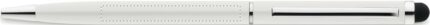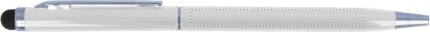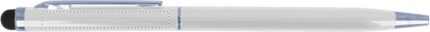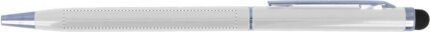 Twist action ball pen in aluminium with stylus and shiny chrome clip. Blue ink.