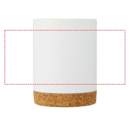 Contemporary ceramic mug with cork base which gives a natural look. Volume capacity is 425 ml. Handwash recommended. Presented in a recycled cardboard gift box.