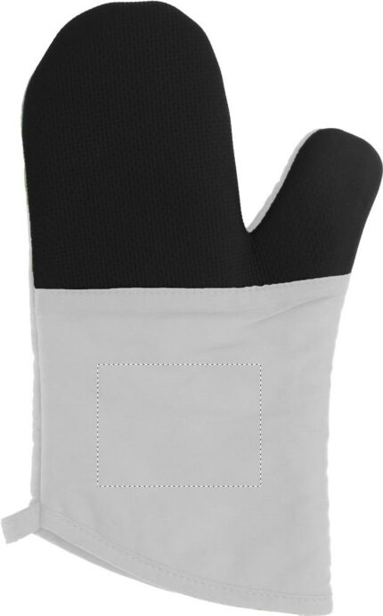 Useful kitchen oven glove in cotton material with one side rubber material.