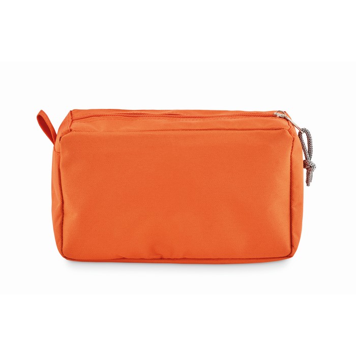 Cosmetic bag with double zipper. 600D polyester with PPE backing.