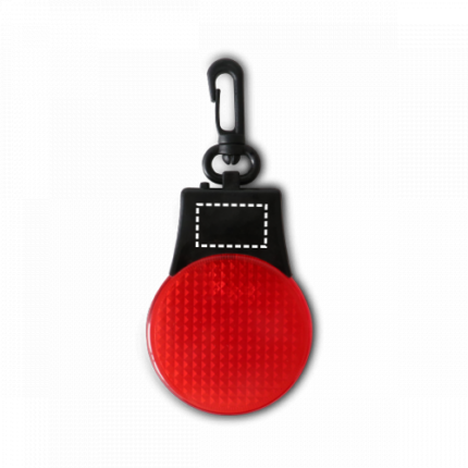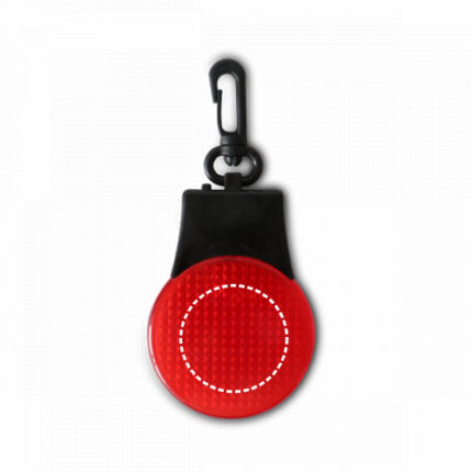 Reflective light with 3 LEDs, 3 light modes and carabiner. This light includes 2 CR1220 batteries. 55 x 75 mm