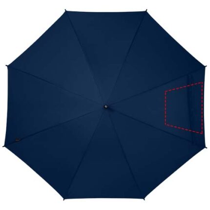 23” automatic opening umbrella with a recycled PET pongee polyester canopy. It has a sturdy metal shaft, fiber glass frame, and a comfortable EVA handle with colour matching end. Large print area on each of the panels.
