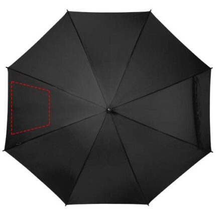 23” automatic opening umbrella with a recycled PET pongee polyester canopy. It has a sturdy metal shaft, fiber glass frame, and a comfortable EVA handle with colour matching end. Large print area on each of the panels.