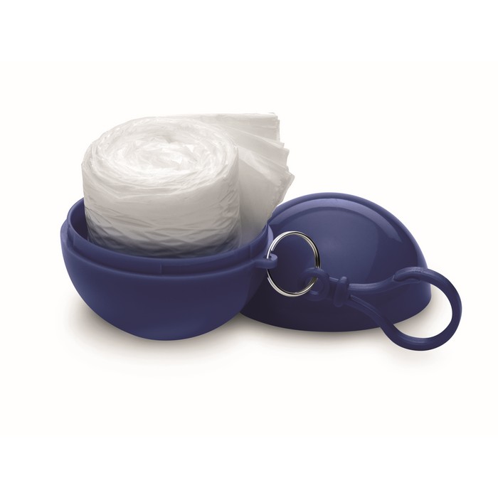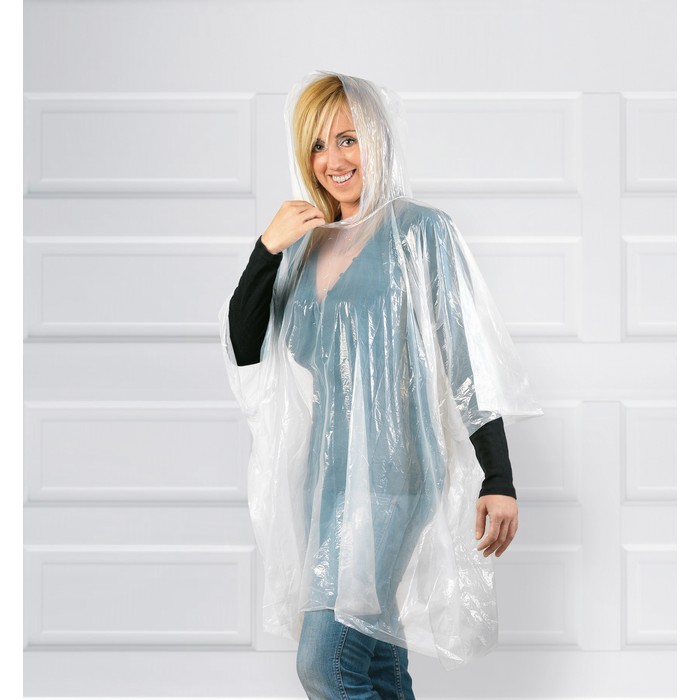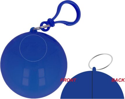 Transparent PE poncho wrapped in an AS ball shell with carabiner hook to hang on a belt or a bag.