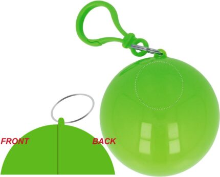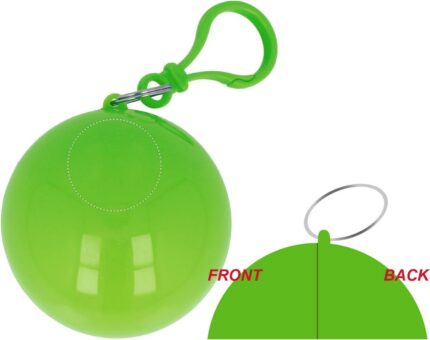 Transparent PE poncho wrapped in an AS ball shell with carabiner hook to hang on a belt or a bag.