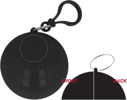 Transparent PE poncho wrapped in an AS ball shell with carabiner hook to hang on a belt or a bag.
