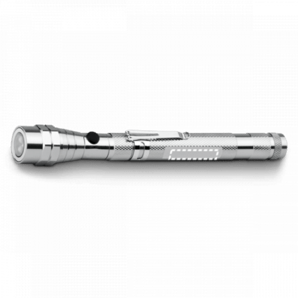 Extendable and flexible metal LED torch with 3 LEDs, magnet on the tip and clip. Includes 4 LR44 lithium batteries. ø22 x 175 mm