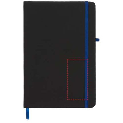 The Noir notebook has a soft-feel black PU cover, for creating a tactile finish to the notebook. Each notebook has a coloured closure strap, pen loop and ribbon page marker. The notebook contains 96 sheets (70g/m2) cream lined paper.