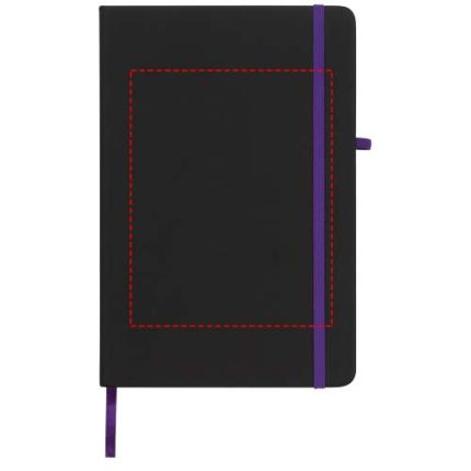 The Noir notebook has a soft-feel black PU cover, for creating a tactile finish to the notebook. Each notebook has a coloured closure strap, pen loop and ribbon page marker. The notebook contains 96 sheets (70g/m2) cream lined paper.