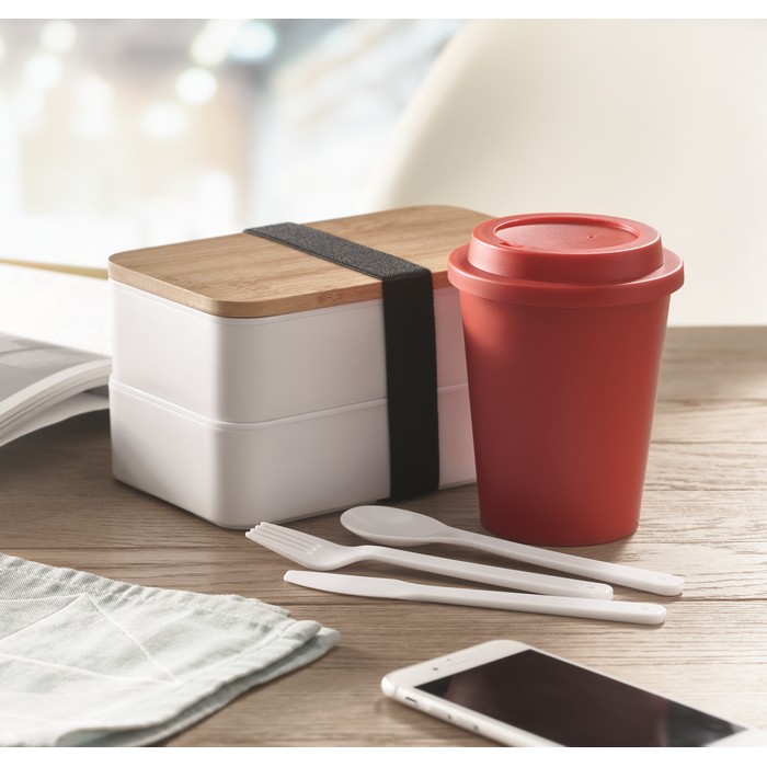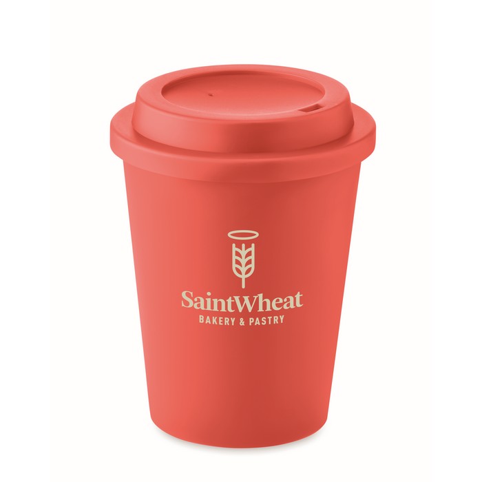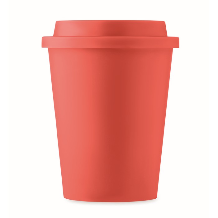 Double wall tumbler with drinking mouthpiece lid in PP. Capacity: 300 ml.