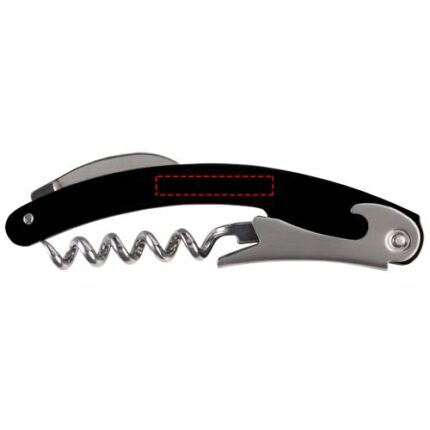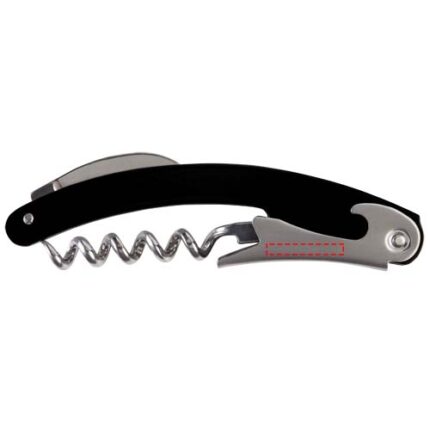 Stainless steel waitress knife with a coloured body featuring a foil cutter and bottle opener.