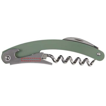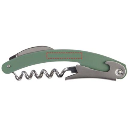 Stainless steel waitress knife with a coloured body featuring a foil cutter and bottle opener.