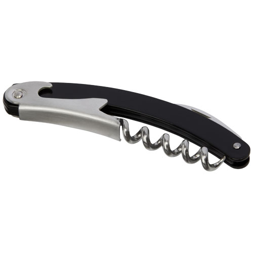 Stainless steel waitress knife with a coloured body featuring a foil cutter and bottle opener.