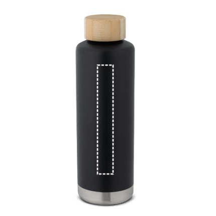 Double wall stainless steel vacuum insulated bottle with copper coated internal wall. Bamboo lid and silicone ring for extra protection. The bottle has capacity up to 640 mL and keeps drinks hot for 16 h and cold for 48 h. It also has a powder coating which gives it more durability and strength. Supplied in a kraft paper gift box. ø72 x 233 mm