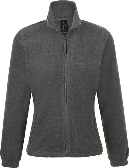 SOL’S NORTH women’s fleece sweater in anti-pilling material, reinforced neck seam, high-lined collar, 2 zipped pockets, elasticated cuffs, crescent at the back, elastic drawstring at the hem. Fabric detail: 300g/m² fleece 100% polyester. OEKO-TEX®. Only sold with print