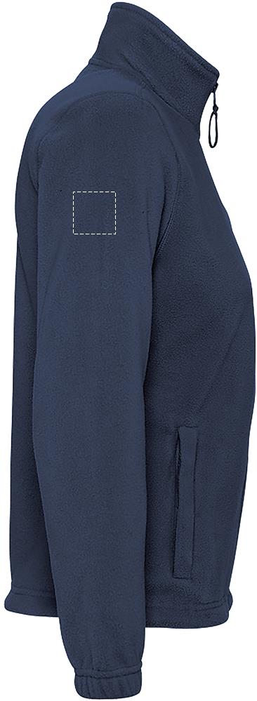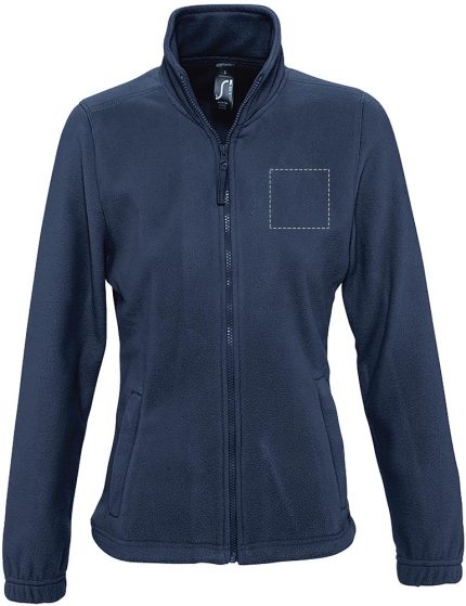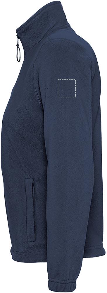 SOL’S NORTH women’s fleece sweater in anti-pilling material, reinforced neck seam, high-lined collar, 2 zipped pockets, elasticated cuffs, crescent at the back, elastic drawstring at the hem. Fabric detail: 300g/m² fleece 100% polyester. OEKO-TEX®. Only sold with print