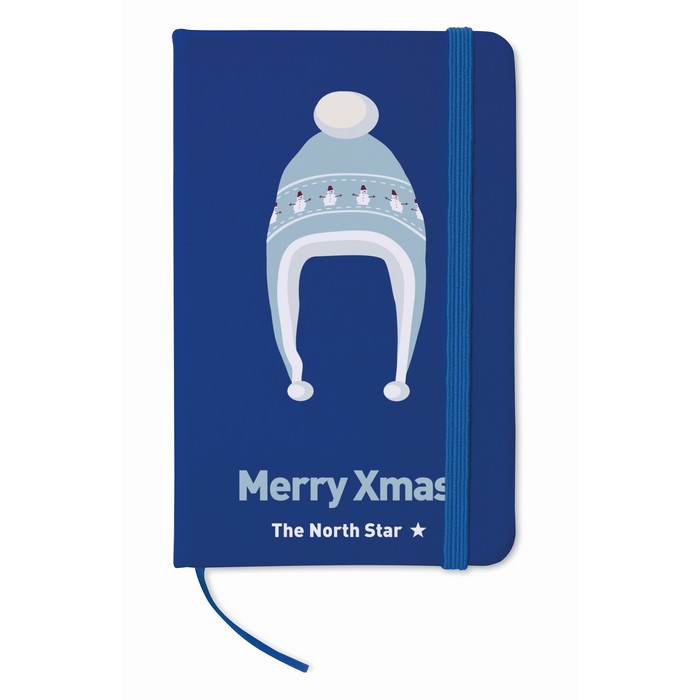 A6 notebook with hard PU cover. Casebound. 192 lined pages (96 sheets). Matching elastic closure strap and ribbon page-marker.
