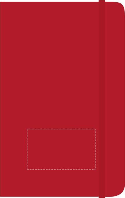 A6 notebook with hard PU cover. Casebound. 192 lined pages (96 sheets). Matching elastic closure strap and ribbon page-marker.
