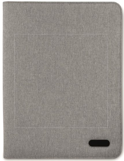 A4 conference folder in two-toned polyester. Zipped. 20 lined pages notepad. 3 compartments. Pen holder.