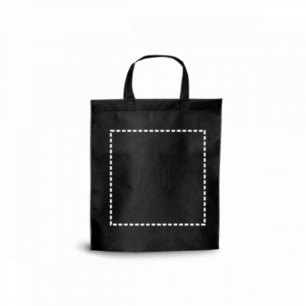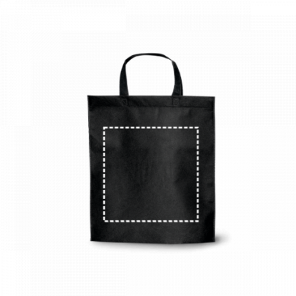Thermo sealed non-woven bag (80 g/m²) with 38 cm handles. 380 x 415 x 85 mm