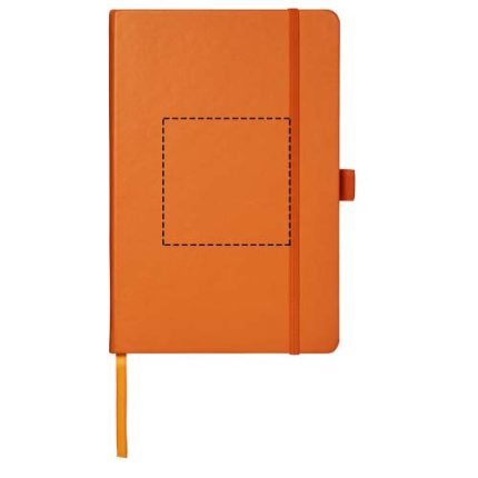 Imitation leather A5 (14.2 cm x 21.4 cm) notebook (leatherette) with elastic band, ribbon marker, pen loop and accordion back pocket. Includes 96 sheets of lined cream paper in 80 g/m2 and is offered in a Journalbook white sleeve.