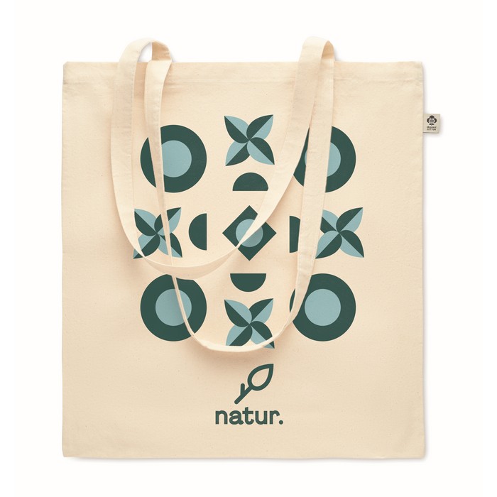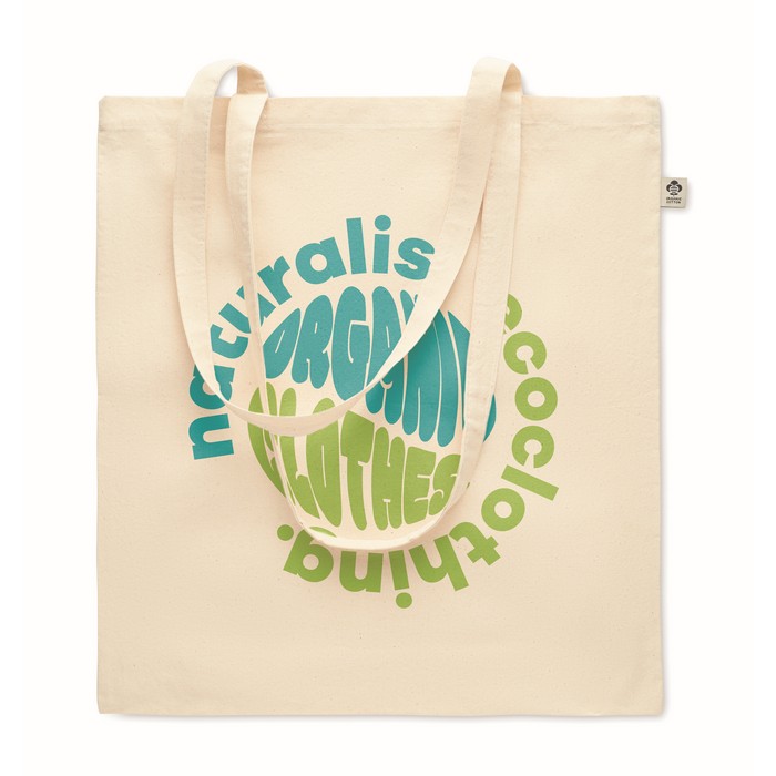 Organic cotton shopping bag with long handles. 180 gr/m².