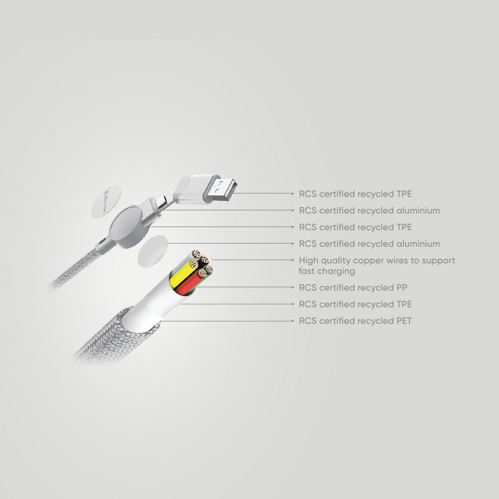Oakland RCS recycled plastic 6-in-1 fast charging 45W cable