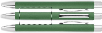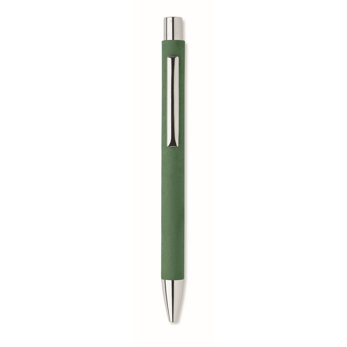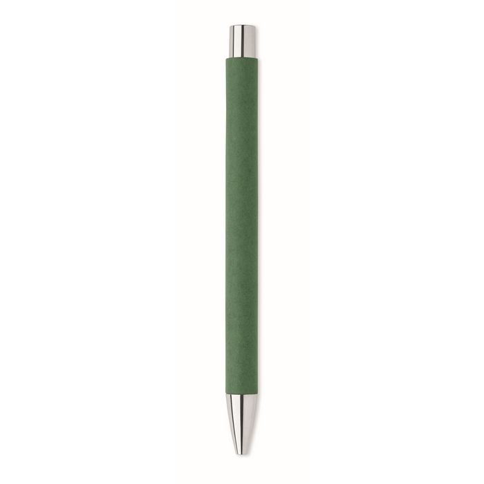 Push button ball pen in recycled paper and metal clip and plastic fittings. Blue ink.