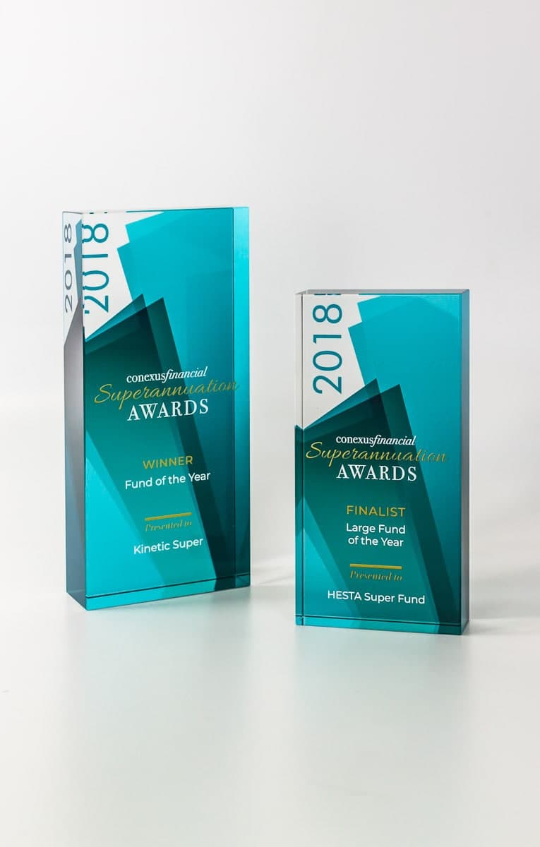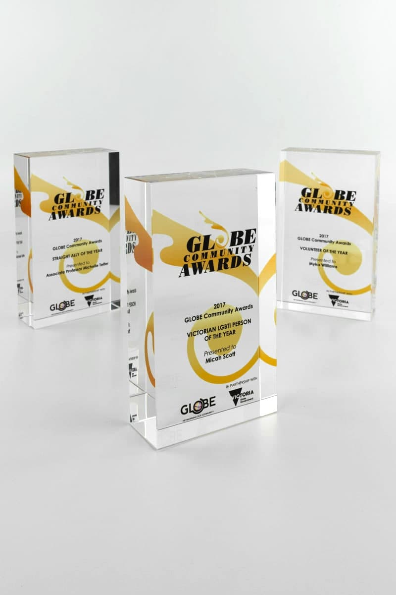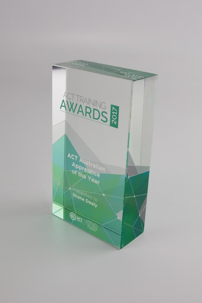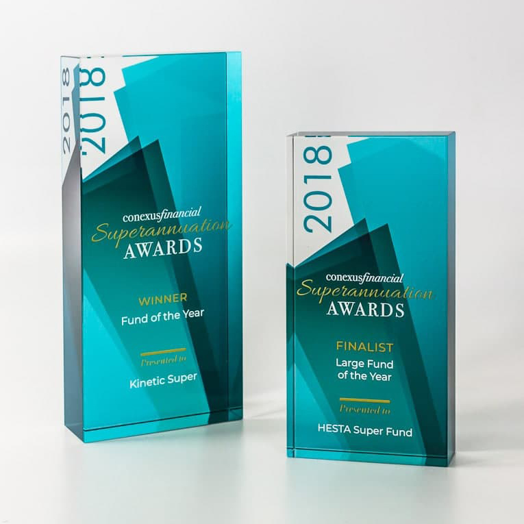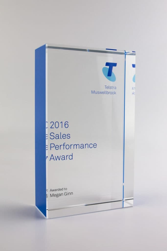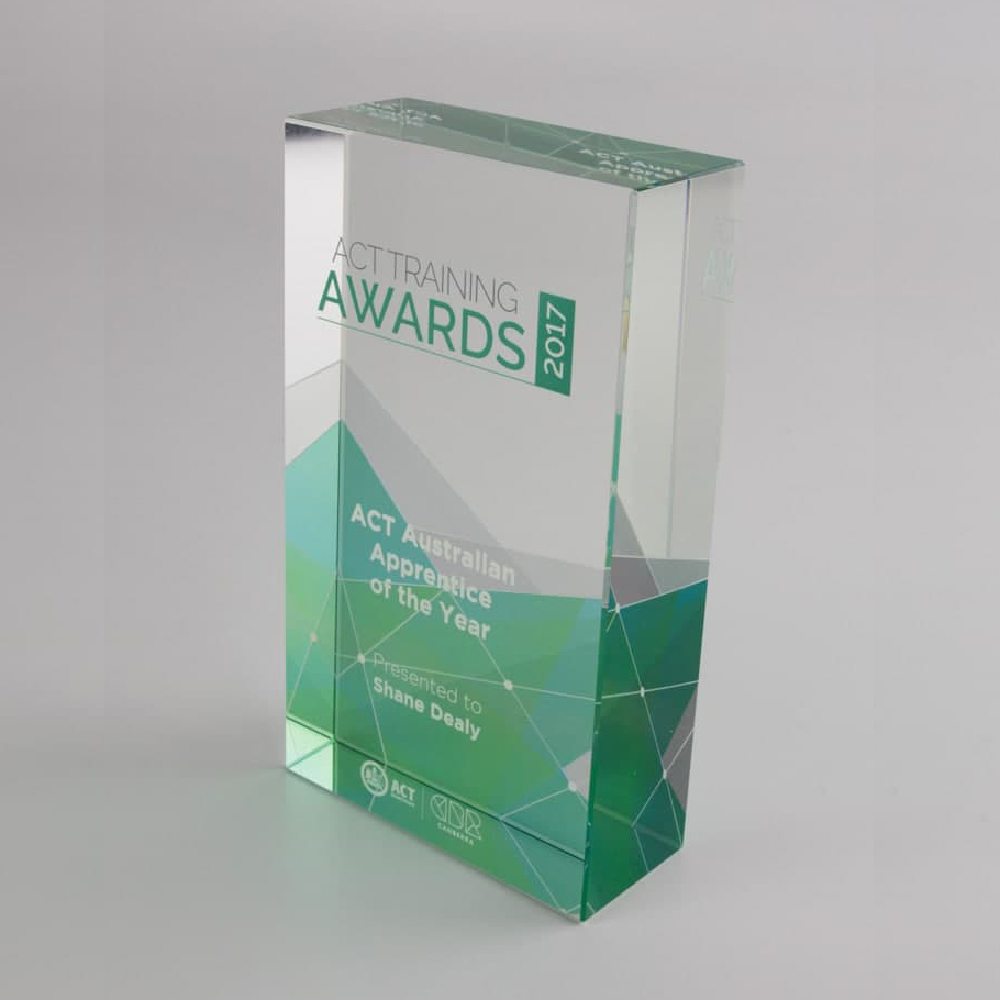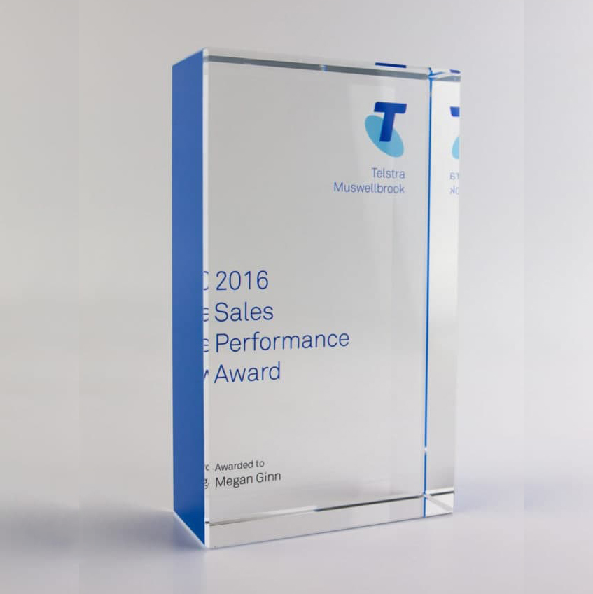 Rectangular plexiglass awards, digitally printed according to your choice.