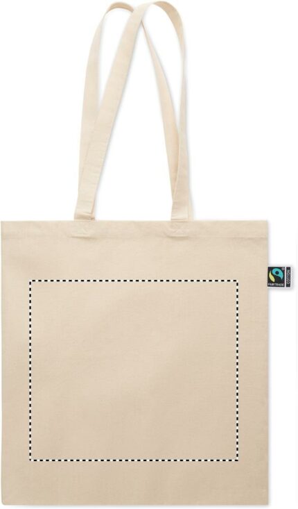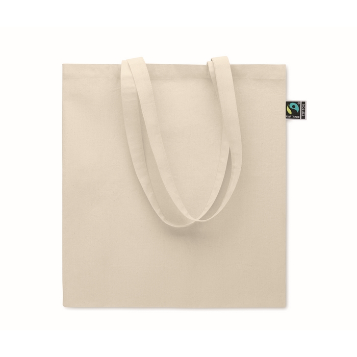 Shopping bag with long handles and gusset made of Fairtrade cotton. 180 gr/m².