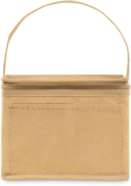 Paper woven cooler bag for 6 cans. It has a handle and a front pocket. Isolation material: PE foam layer. Capacity 3L.