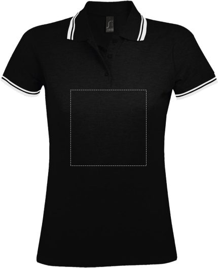 SOL’S PASADENA women polo shirt 200g. Modern cut & style. Wide colours range. Designed for any type of market. Rib 1×1 collar and cuffs. Reinforcing tape on neck. Short sleeves. Contrasting stripes on collar and cuffs. Tone on tone 3 button placket. Fitted cut. Cut and sewn. Side slits. Spare button on the inside seam. Fabric details: 100% Ringspun cotton. OEKO-TEX®. Only Sold with Print.