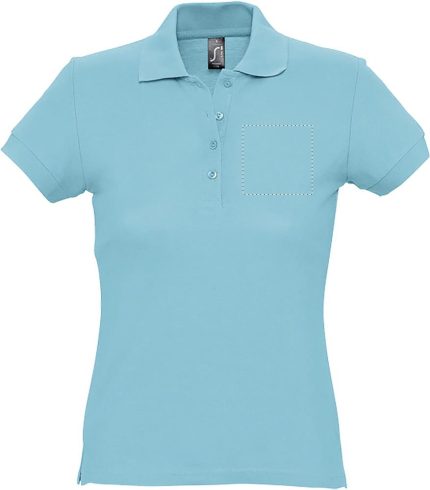 SOL’S PASSION Women’s Polo Pique which is very affordable. Wide range of colours. Stylish female cut with 4 tone-on-tone buttons, ribbed collar and cuffs, reinforced neck seam, straight at the hem with side slits, fitted cut with sewn side seams, spare button on the inside. Fabric details: 170g/m² in 100% combed ringspun cotton. OEKO-TEX®. Only sold with print