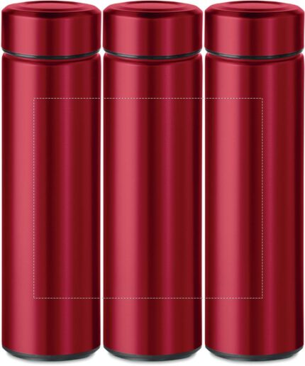 Double wall stainless steel insulating vacuum flask with additional tea infuser. Capacity 425 ml. Leak free.