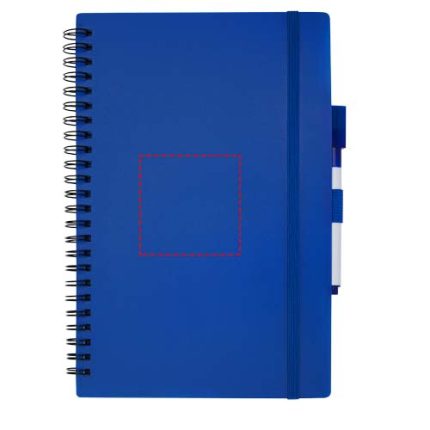 Sustainable notebook focused on reducing the use of paper to save the environment. After a while taking notes, drawing or brainstorming, the pages can be cleaned with the eraser on the marker to re-use the pages again. It can also be cleaned with a regular fabric cloth (not included). Features 20 sheets (40 pages) with half dotted and half blank layout, and a black writing marker.
