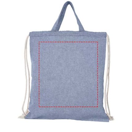 Drawstring backpack made of 150 g/m² recycled cotton polyester blend. Recycled cotton is manufactured from pre-consumer waste generated by textile factories during the cutting process. Similar colours are blended together so no additional dyeing is required. Large main compartment with cotton drawstring closure in natural colour. Features two handles with a dropdown height of 14 cm. Resistance up to 5 kg weight. There may be minor variations in the colour of the actual product due to the nature of the production process.