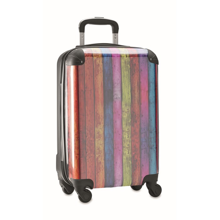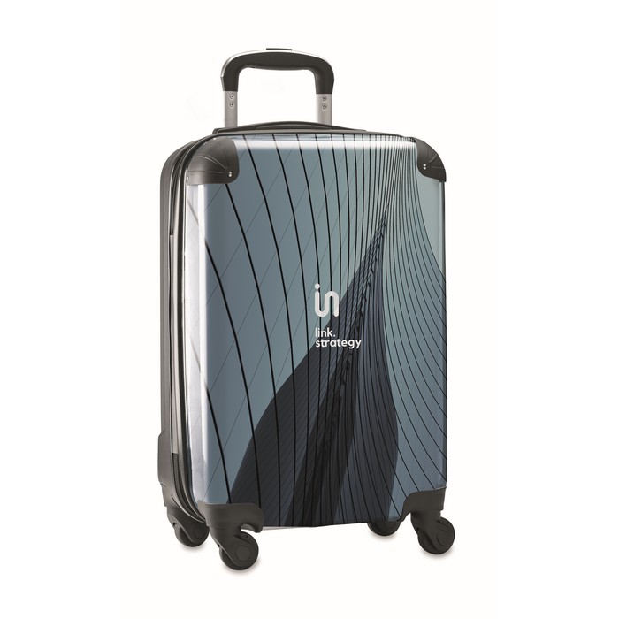 Trolley in PC and ABS with Photo inlay. It has an upper zipped compartment and bottom compartment with ribbons. Including a combination lock and double tube frame.