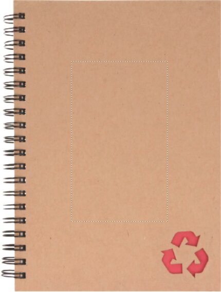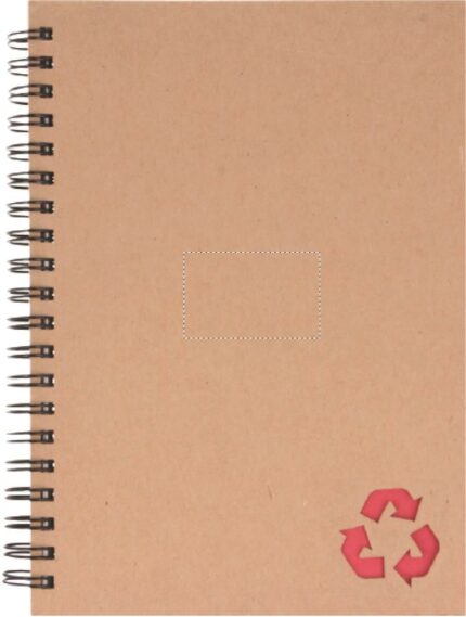 Recycled carton cover notebook. Twin-wire. 140 lined stone paper pages (70 sheets). Stone paper is made out of limestone (calcium carbonate) and HDPE (polyethylene resin) used as a binder. It is waterproof and resistant to grease.