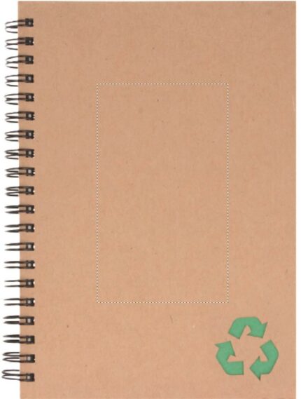 Recycled carton cover notebook. Twin-wire. 140 lined stone paper pages (70 sheets). Stone paper is made out of limestone (calcium carbonate) and HDPE (polyethylene resin) used as a binder. It is waterproof and resistant to grease.