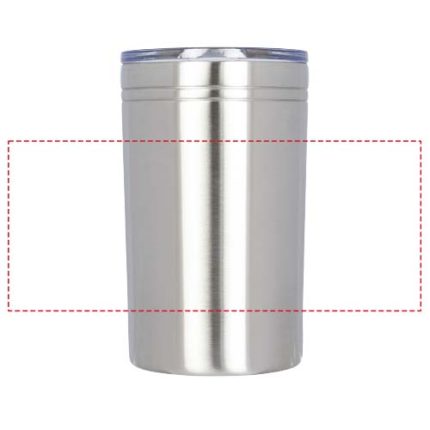 Double-wall construction, vacuum insulated. Clear, press-on lid with slide closure. Works as a tumbler or drink insulator. Volume capacity is 330 ml.