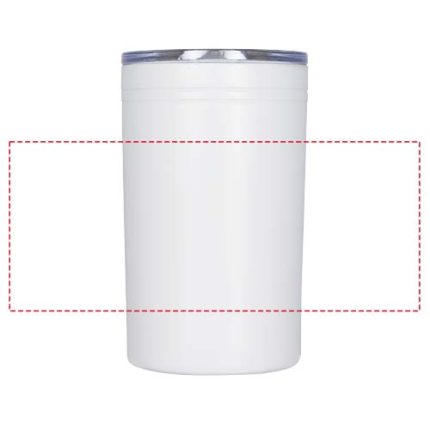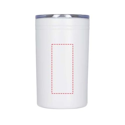 Double-wall construction, vacuum insulated. Clear, press-on lid with slide closure. Works as a tumbler or drink insulator. Volume capacity is 330 ml.
