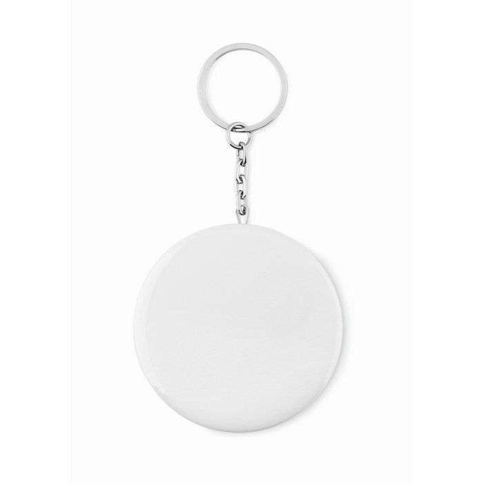 Key ring pin button and bottle opener with paper inlay. Ø5,8 CM. Minimum order quantity 25 pieces. For unprinted orders the item comes unassembled.