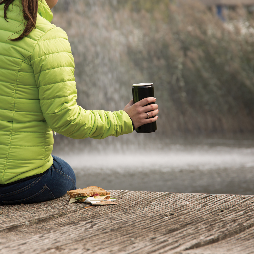 This drinking can (330 ml) is made 100% out of PLA. Because of this the can is compostable at the end of its life cycle. The can is microwave and dishwasher safe. Packed in kraft gift packaging.