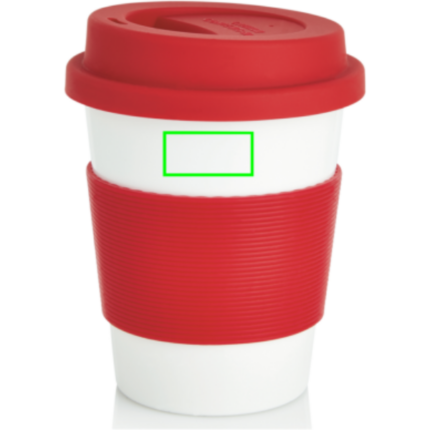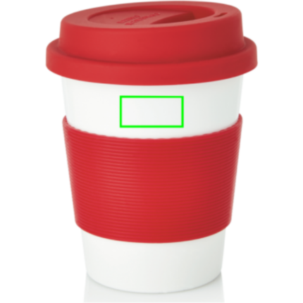 350ml tumbler with silicone grip and lid. Manufactured from 100% plant material (PLA). BPA free and dishwasher proof.