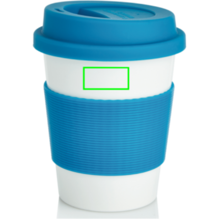350ml tumbler with silicone grip and lid. Manufactured from 100% plant material (PLA). BPA free and dishwasher proof.