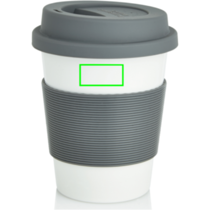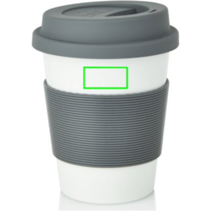 350ml tumbler with silicone grip and lid. Manufactured from 100% plant material (PLA). BPA free and dishwasher proof.