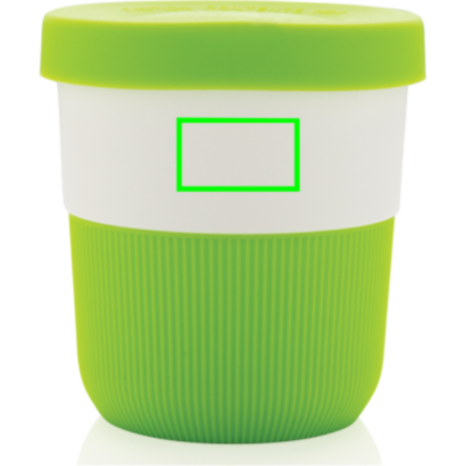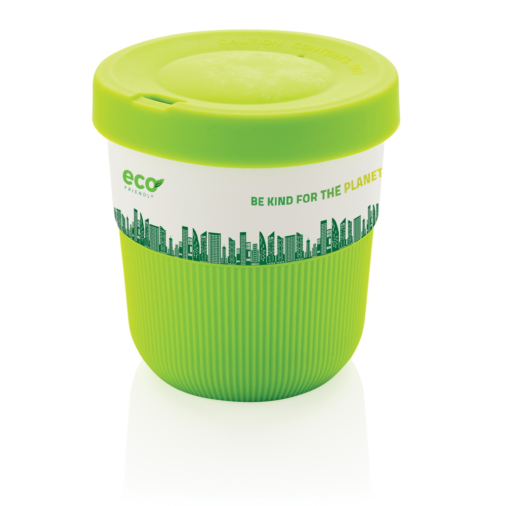 A sustainable alternative to traditional cups! Bringing style and practicality to your morning commute, this PLA coffee cup is ideal for transporting your favourite hot beverage. Manufactured from plant material (PLA), so not only stylish but also kind for the planet. Comes with a silicone grip and lid for your convenience. Fits conveniently under most coffee machines. 100% melamine free. Capacity 280ml.