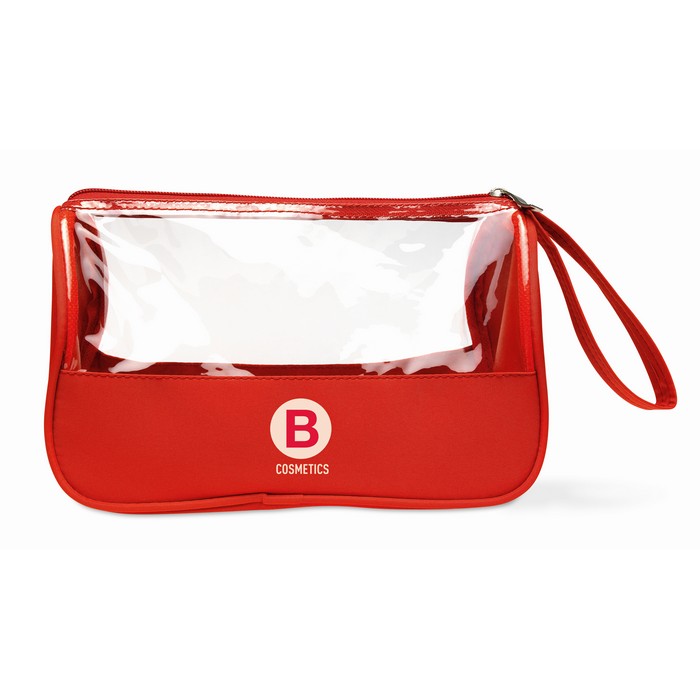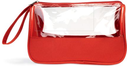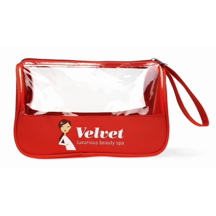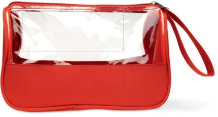 Toiletry bag in microfiber and PVC 6 Phthalate free, with wrist handle.