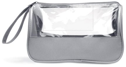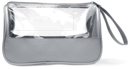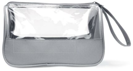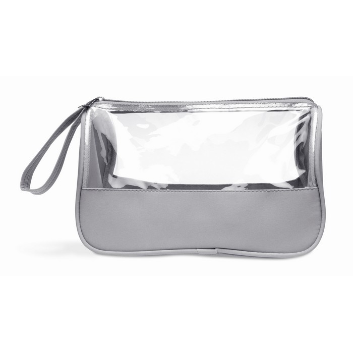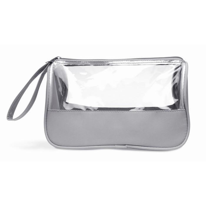 Toiletry bag in microfiber and PVC 6 Phthalate free, with wrist handle.