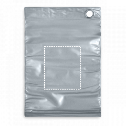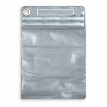 Waterproof bag for tablets up to 9’7” in PVC. It allows the user to interact with the screen from the outside. The loop on top of this bag makes it easy to carry. 215 x 329 mm